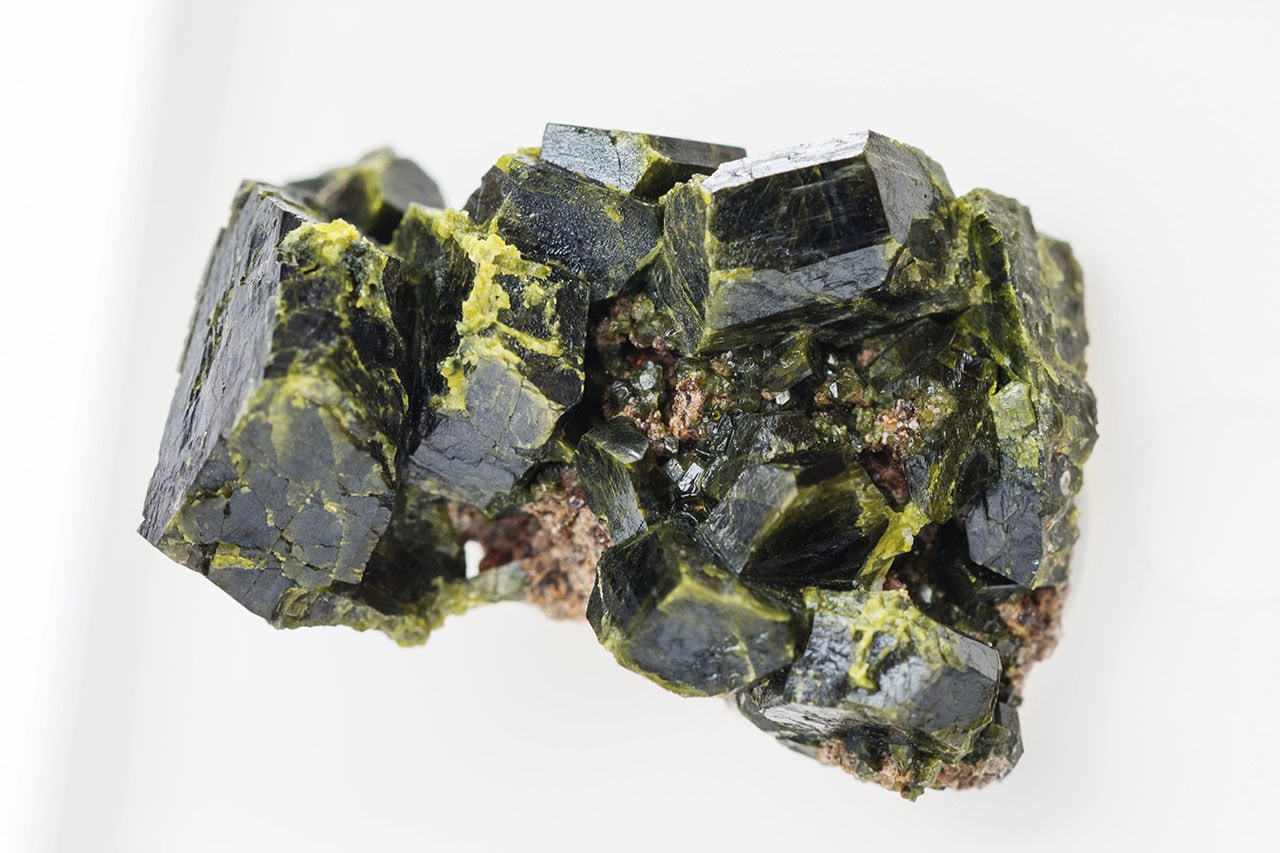 Epidote captivates through its distinctive pistachio to yellow-green coloration, a hue so characteristic that "epidote green" has become a recognized color term among mineralogists. This color results from iron substituting for aluminum in the crystal structure—more iron creates darker green to nearly black varieties, while less produces lighter yellow-green shades.